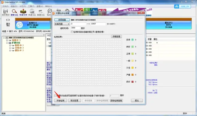 点击“磁盘”选择“坏道检测与修复”,会出现下面的界面: