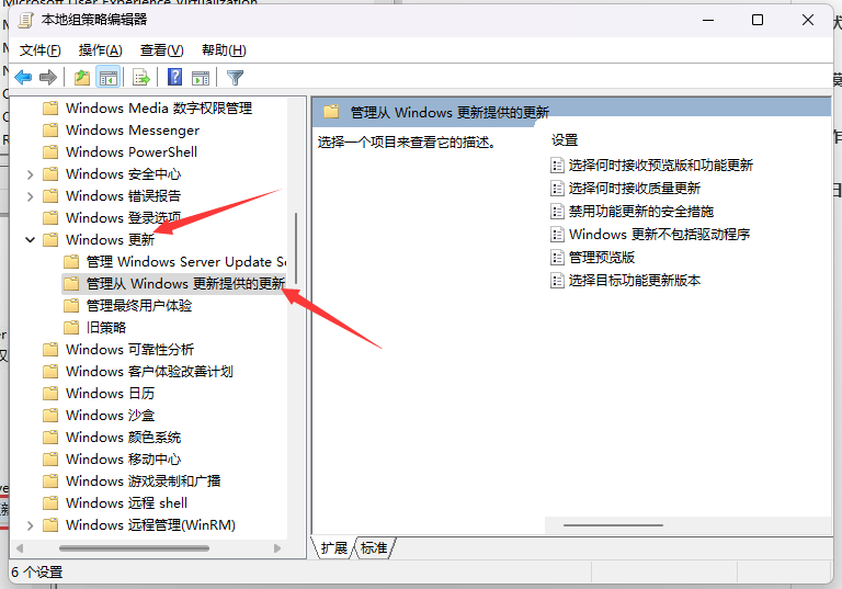 4、再继续展开Windows 更新下的管理从 Windows 更新提供的更新;