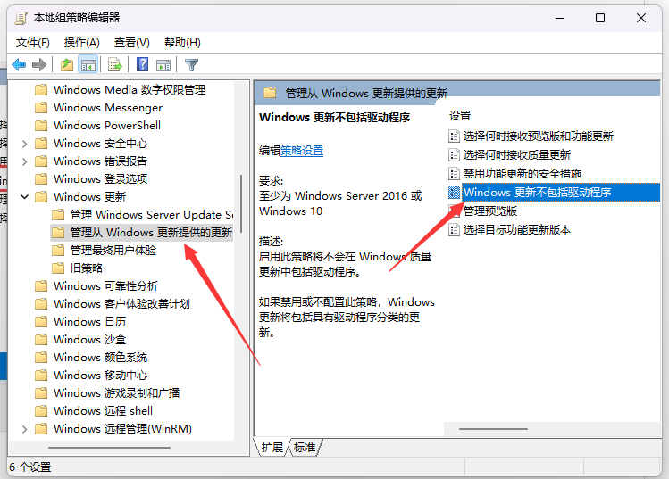 5、接着双击打开右侧Windows 更新不包括驱动程序策略;