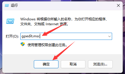 2、打开运行后,输入gpedit.msc命令,再按确定或回车,打开本地组策略编辑器;